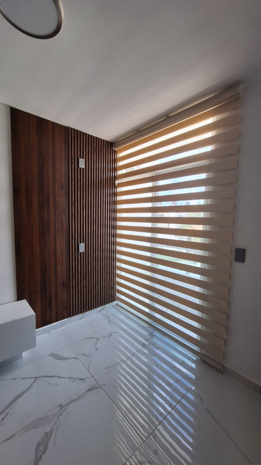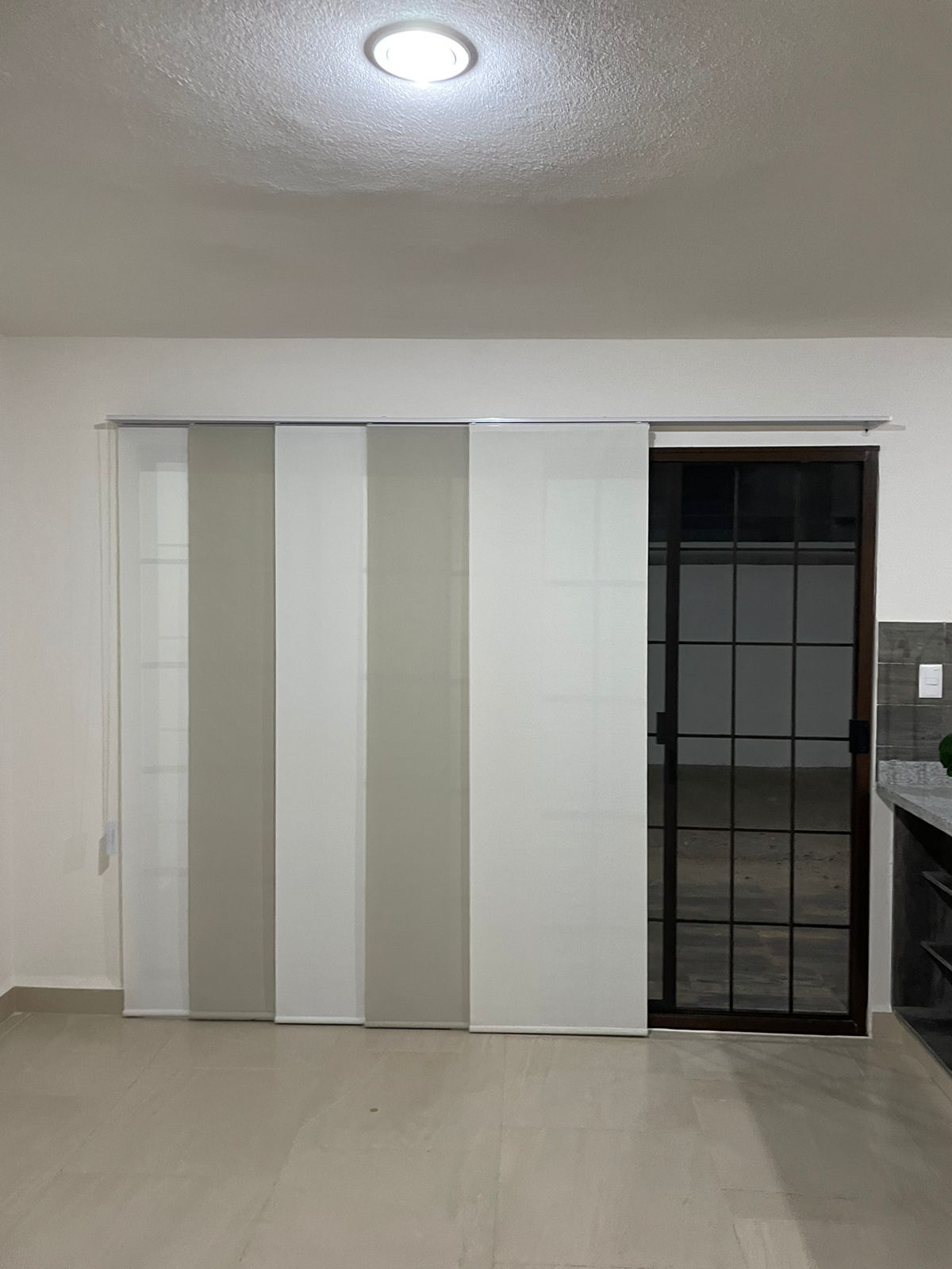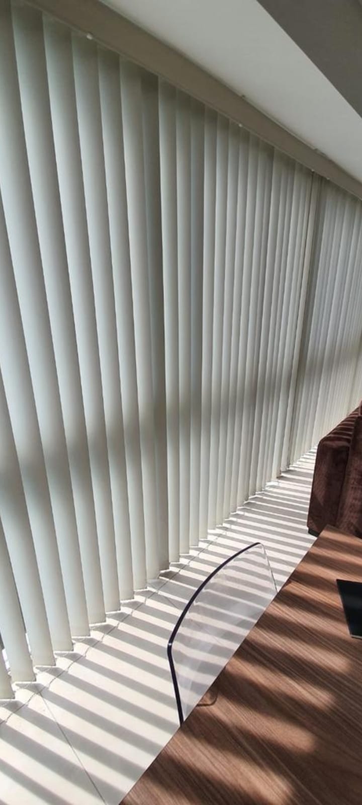 La persiana vertical tiene como función principal crear un ambiente moderno, novedoso y discreto, contando con un diseño en donde puedes regular el paso de luz con solo mover la cadena, además de generar privacidad al estar cerrada.