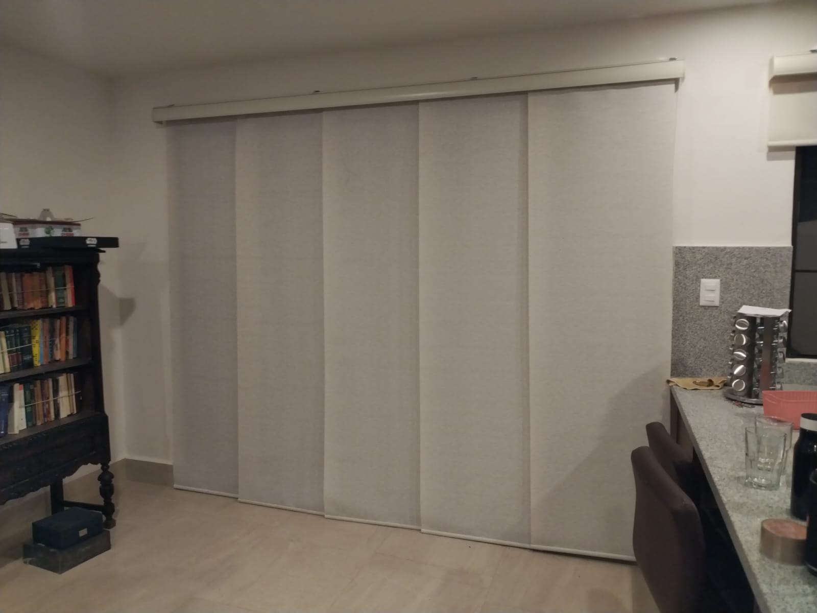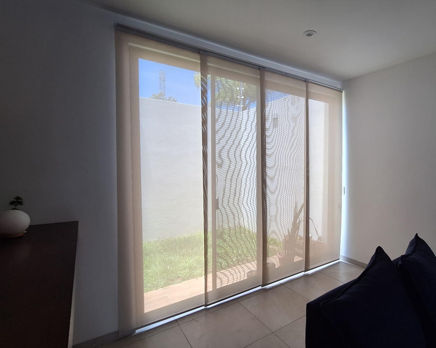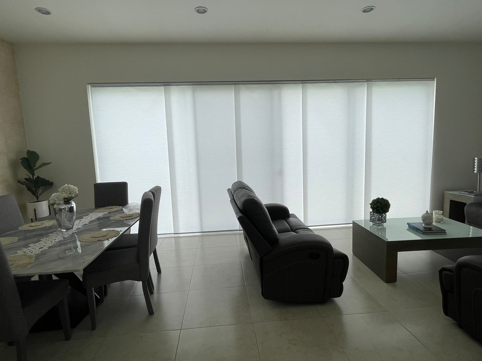 La persiana vertical tiene como función principal crear un ambiente moderno, novedoso y discreto, contando con un diseño en donde puedes regular el paso de luz con solo mover la cadena, además de generar privacidad al estar cerrada.