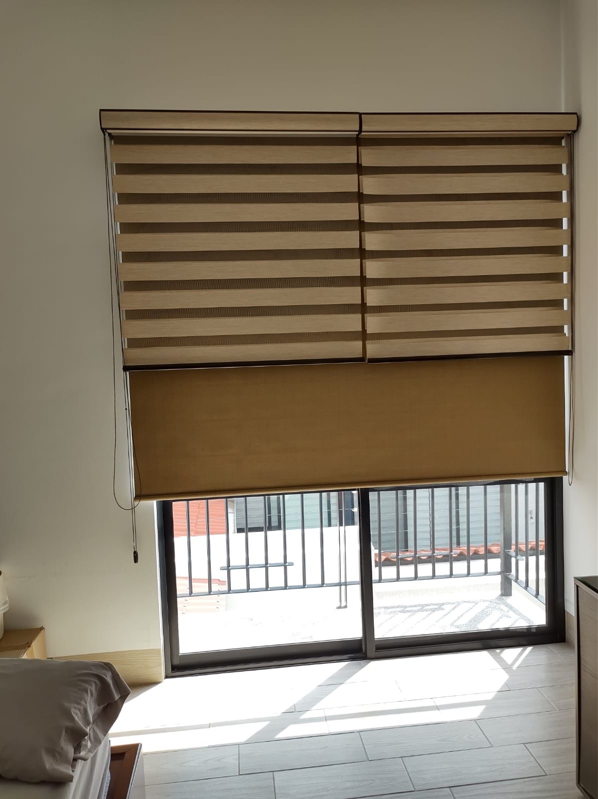 Las persianas día y noche es la combinación perfecta de dos persianas enrollables una traslúcida que se usa en el día y permite el paso de luz y otra con tela black out la cual no deja pasar luz.